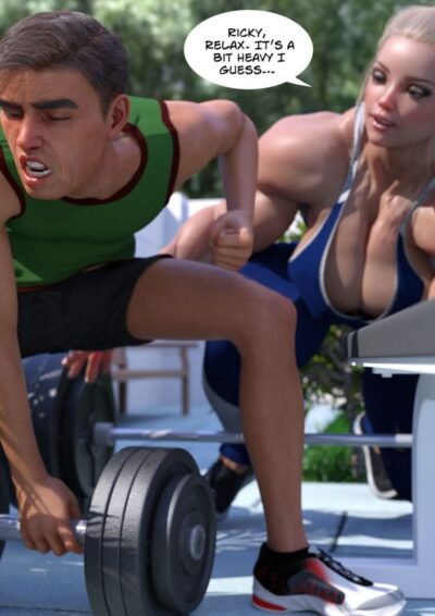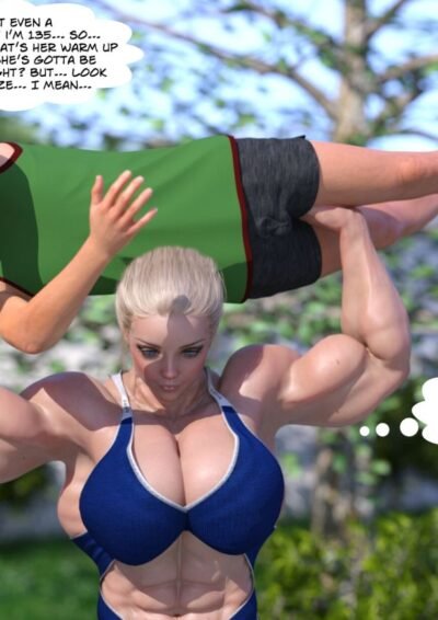 Abby and Rick grew up together, but in their college years lost touch. We meet these two during a holiday, when they're both back in their native town and bump into each other on a run. Rick is stunned to see that his friend, whom he introduced to the gym a long time ago, has now grown into incredibly muscular girl who's also quite a bit taller than him!